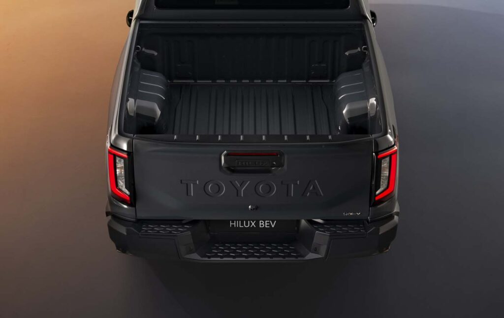 Estéticamente, el Hilux 2026 adopta líneas más afiladas, una parrilla rediseñada y ópticas LED más delgadas. El concepto visual combina robustez con eficiencia aerodinámica (especialmente en la versión BEV, que presenta una parrilla frontal cerrada).